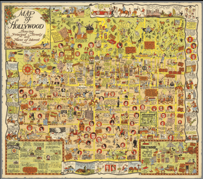 (Figure 2) EarthlyMission (2020). Cool Vintage Map of Hollywood. [image] Available at: https://www.earthlymission.com/cool-vintage-map-of-hollywood/ [Accessed 19 Feb. 2020].
